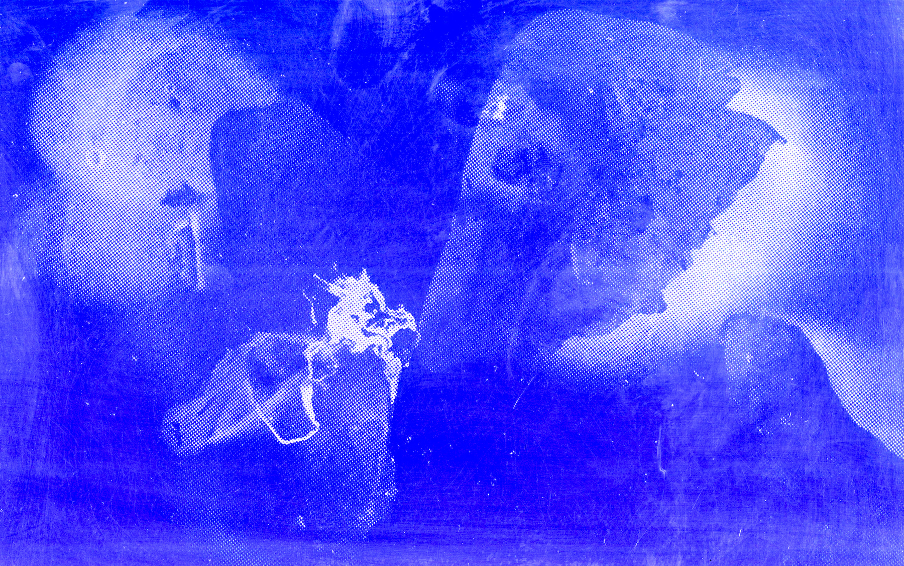 The vivid part of developing the plate is when this mesmerising blue becomes liquid and you’re there, brushing it away to reveal a ghost of the image through heavy clouds of neon fog.