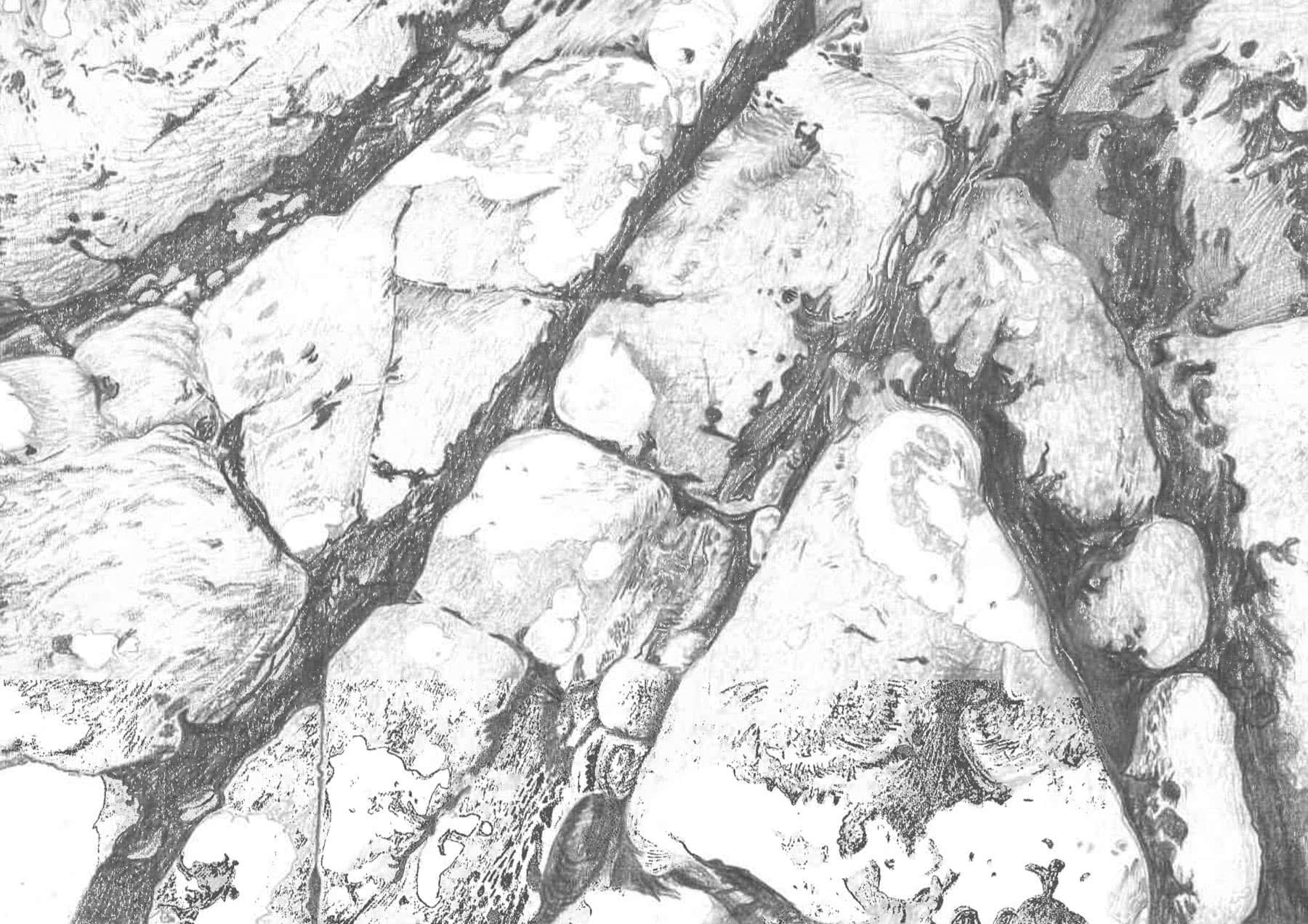 This work has become part of a larger exploration about the effect of time and erosion on the landscape and has influenced the current work I am making towards the final show. In my current work, I have created a series of drawings from observing some chalk rocks under a microscope. These rocks have been eroded by wind, water and sea creatures that form many holes within the rocks