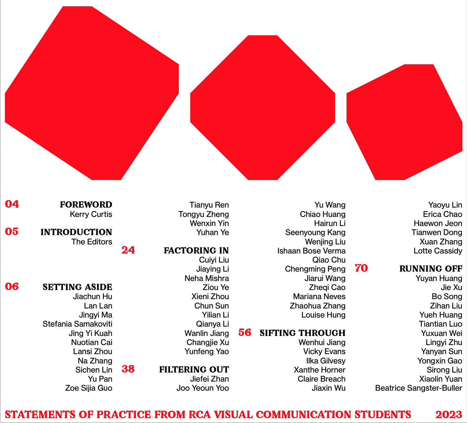 What’s Left Behind is an expansive collection of texts that came out of the ‘Explain Yourself’ writing workshops conducted by Ken Hollings during the Spring of 2023. The last Year 2 MA Visual Communication students were encouraged to compose a 250-word statement that reflected some key aspect of their practice. Their contributions offer a wide range of perspectives on what it means to be at the end of one thing and the start of another, which is something clearly reflected in the thematic arrangement of the resultant material. So be ready for anything. Edited by Ken Hollings and Sheena Calvert with layout and design by Jiarui Wang and Hairun Li.