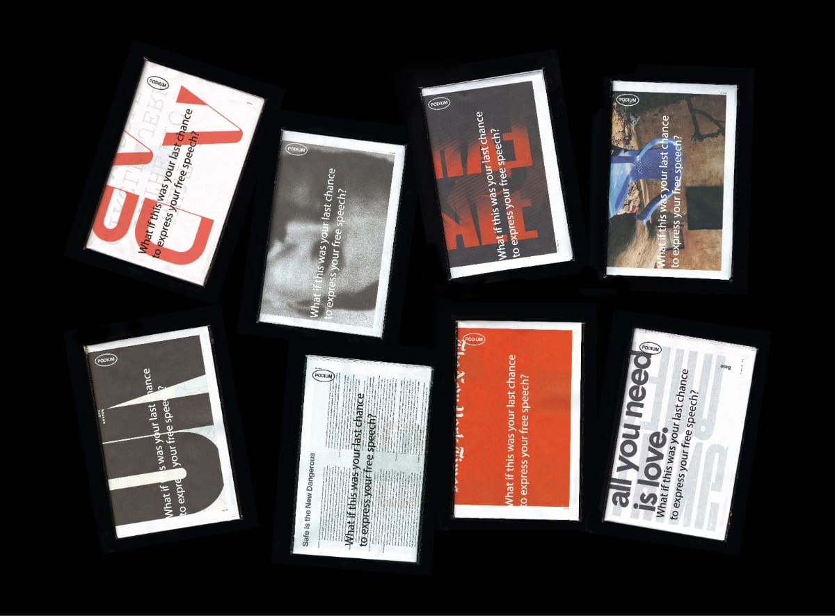 The brief: This is an invitation to contribute to the forthcoming free newspaper publication PODIUM. PODIUM is a collection of voices from a diverse group of contributors with various cultural and professional backgrounds. The publication aims to expose and question what happens to our fundamental right of free speech when under threat from political restrictions and cultural sanctions.