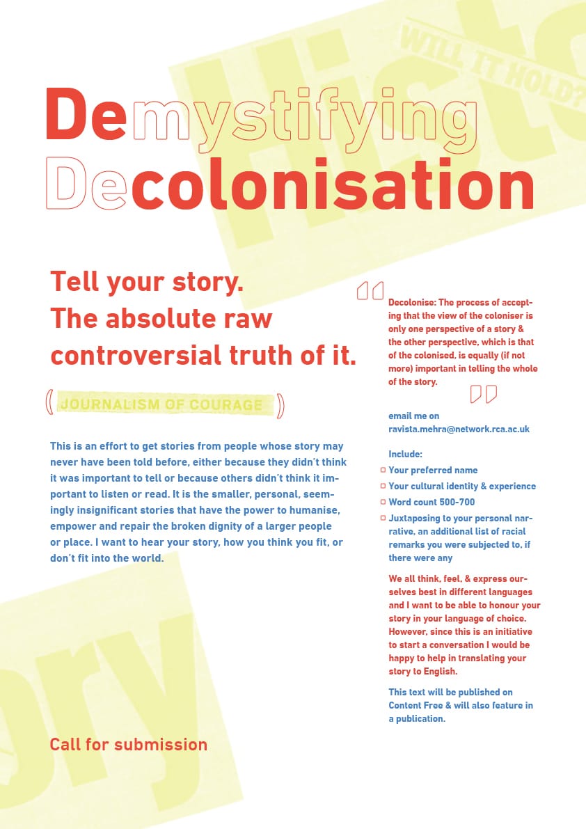 There is a lot of talk these days about decolonisation, especially regarding the institute and curriculum, since we are in an academic setting. However, how can we possibly tackle the massive monster that is decolonisation at such a large scale without tackling it at a personal level? In order to start the process of decolonising our history, geography, economics, literature, we have to first decolonise our own stories, which simply means looking back and reflecting on our cultural experiences growing up.