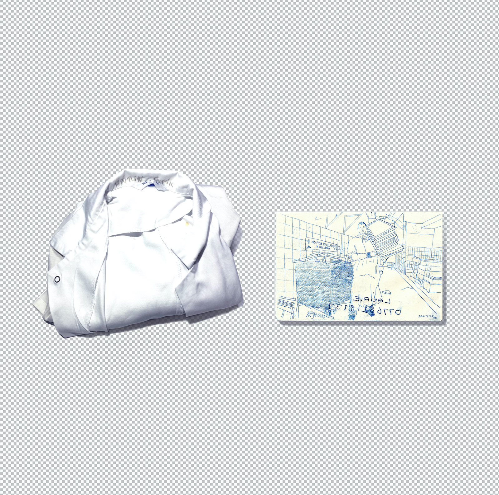 Barter Archive is constructed by using my observational sketches in exchange for memorable objects from the fishmongers. The project aims to preserve the collective memory of the people in Billingsgate Fish Market.